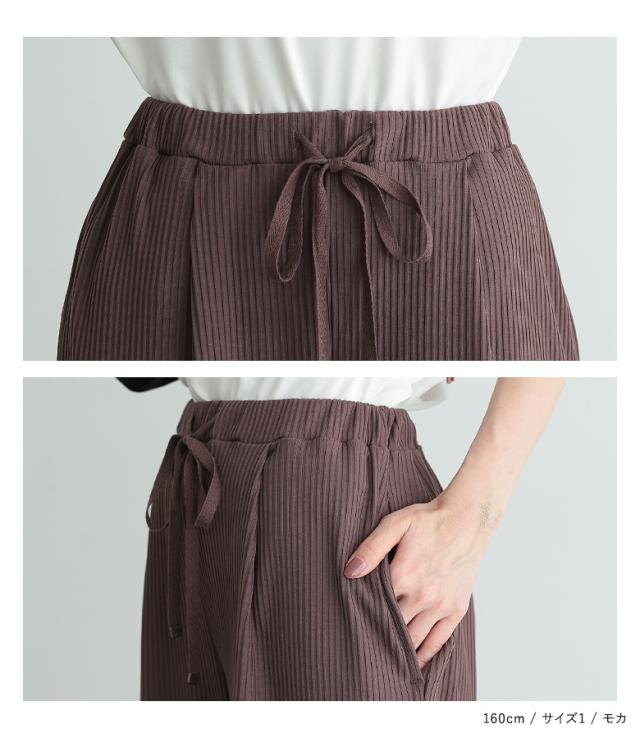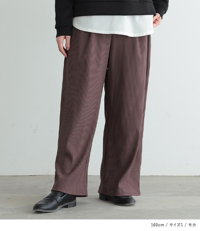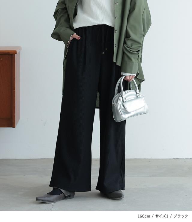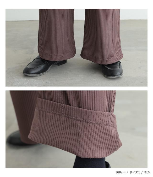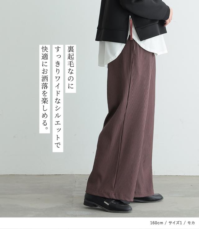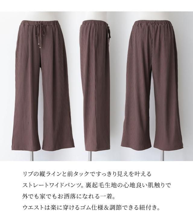 『裏起毛ワイドリブパンツ』 【メール便不可】【20】[パンツ 秋冬 レディース ボトムス リブパンツ ワイド ストレートワイド ロング丈 マキシ丈 裏起毛 ウエストゴム pgn0394]