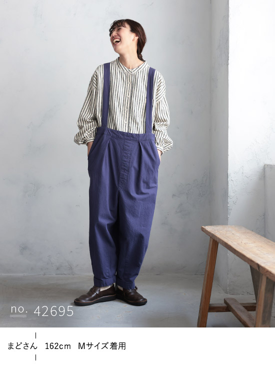 はちみつ堂 散歩道のサロペット レディース サスペンダー コクーンパンツ クロップド 9分丈 九分丈 綿 コットン ボトムス