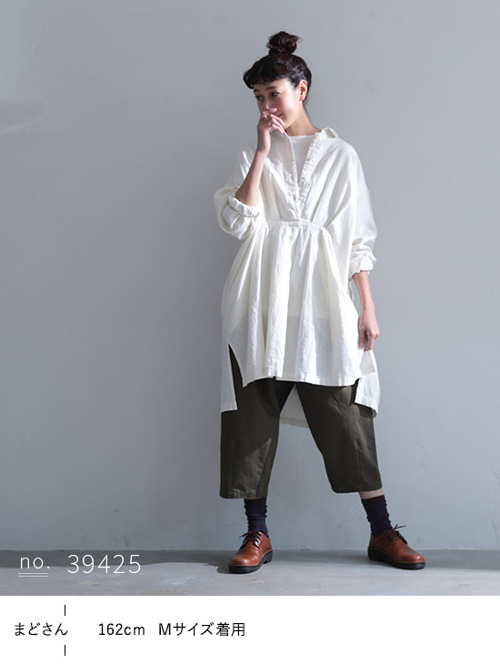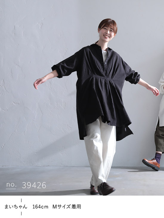 O.W.N フロントプリーツチュニック レディース シャツチュニック ワンピース 膝丈 長袖 リネン混 麻混