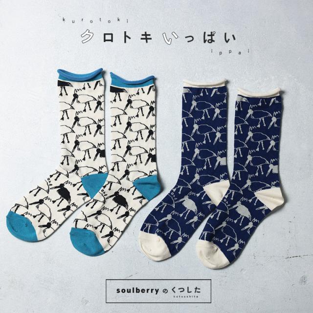 クロトキの靴下 22-24 レディース ソックス くつ下 くつした 鳥 動物柄 雑貨 // 返品 交換不可 【ネコポス対応】