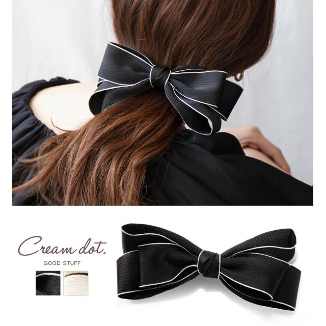 大人っぽいモノトーンカラーのリボンバレッタ。高級感あるシアサッカー生地と、バイカラーで縁どったデザインが華やかで涼しげなアクセントを添えてくれます。シンプルだからデイリーに取り入れやすいアイテムです。