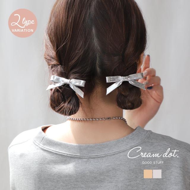 今季のトレンド、リボンモチーフの2セットヘアクリップ。シボ感のある素材&メタリックカラーで甘さを抑えてこなれた印象に。シンプルコーデのアクセントにぴったり◎形が選べる2type展開です。