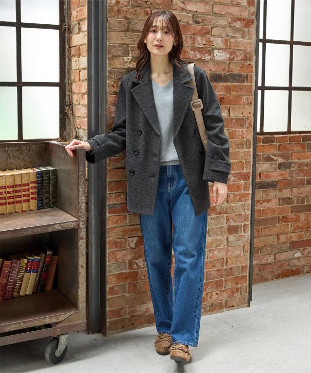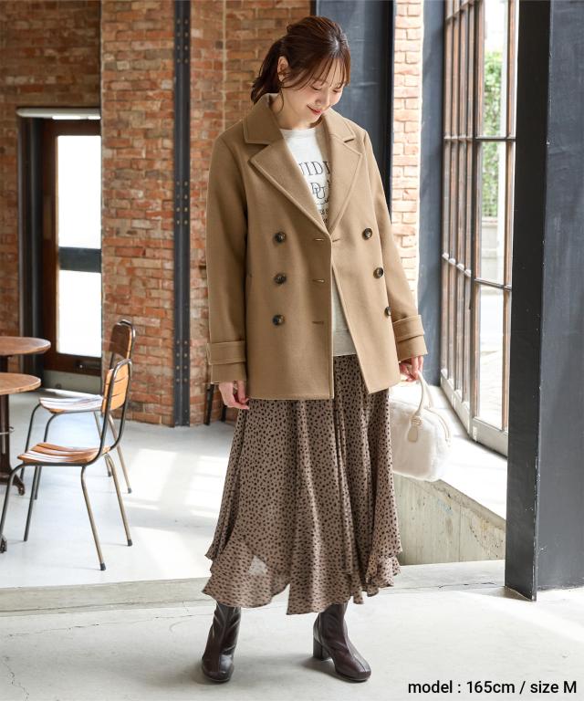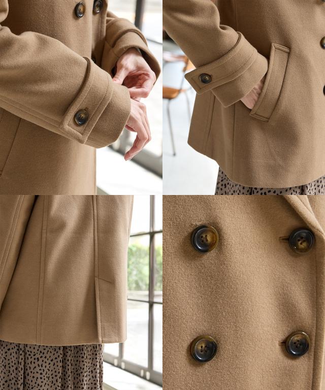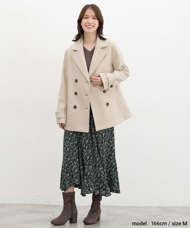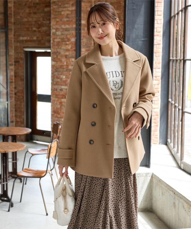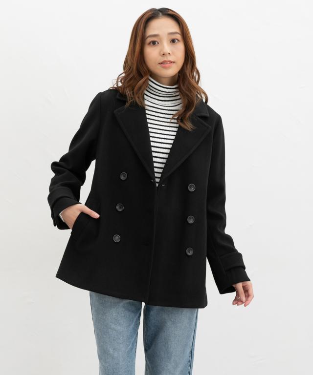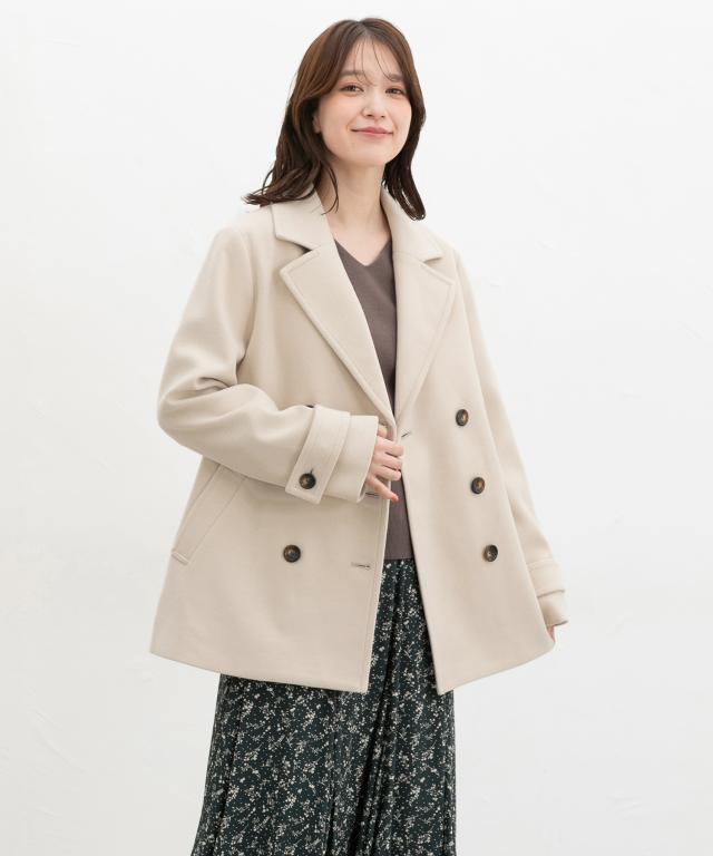 アウター コート ハーフコート Pコート 抗菌 抗菌防臭 静電気軽減 防臭 再生ポリエステル フェイクウール素材 レディース SALE セール Honeys ハニーズ ピーコート