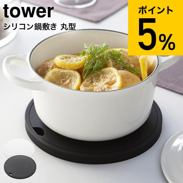 tower 山崎実業 シリコン鍋敷き タワー 丸型 ホワイト ブラック まる ラウンド 吊り下げ 軽量 厚さ1cm 丸洗い可 誕生日プレゼント