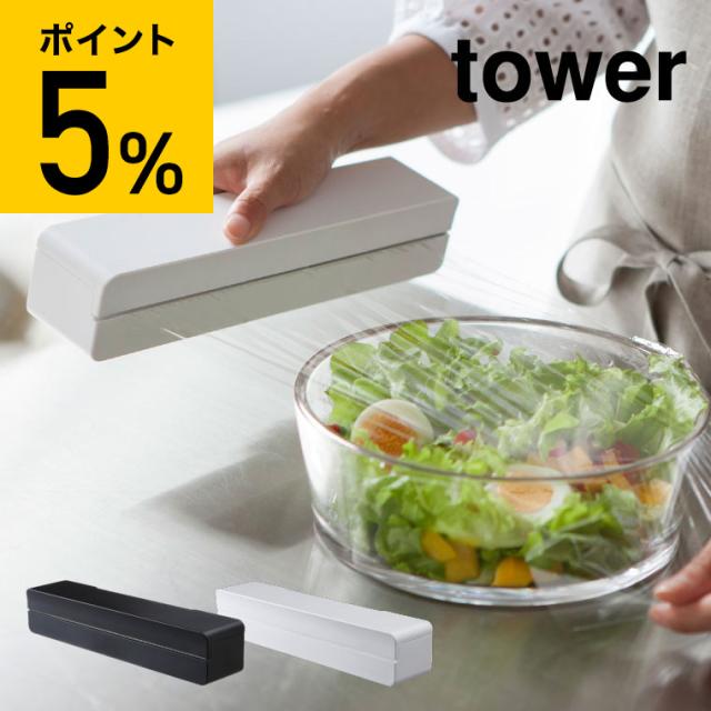 tower 山崎実業 マグネットラップケース タワー S ホワイト ブラック ラップカバー ラップホルダー キッチン収納 おしゃれ 冷蔵庫横 磁石 誕生日プレゼント