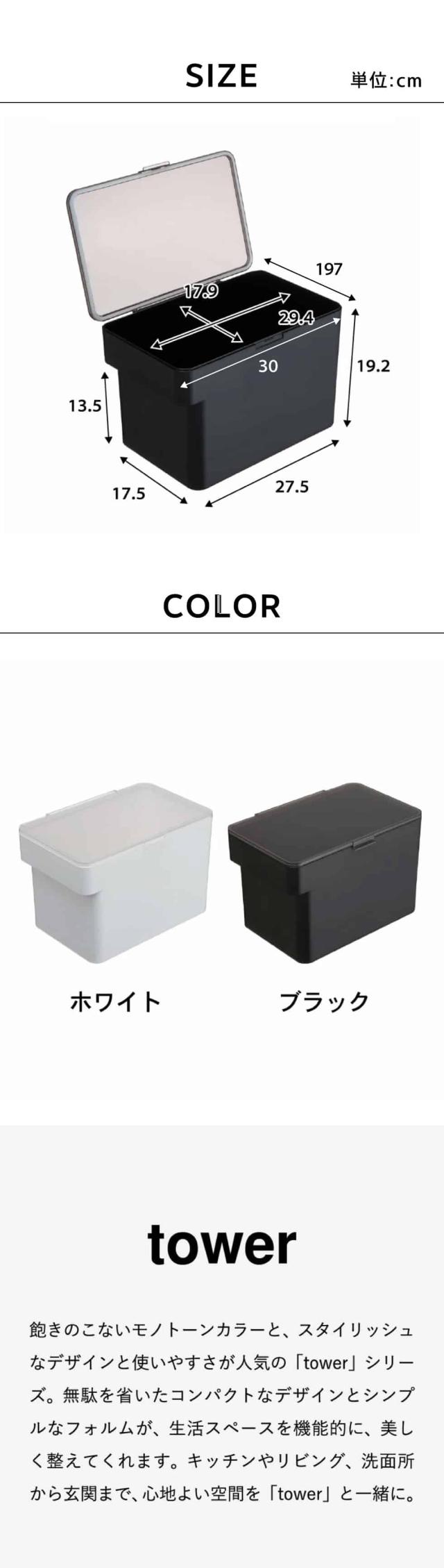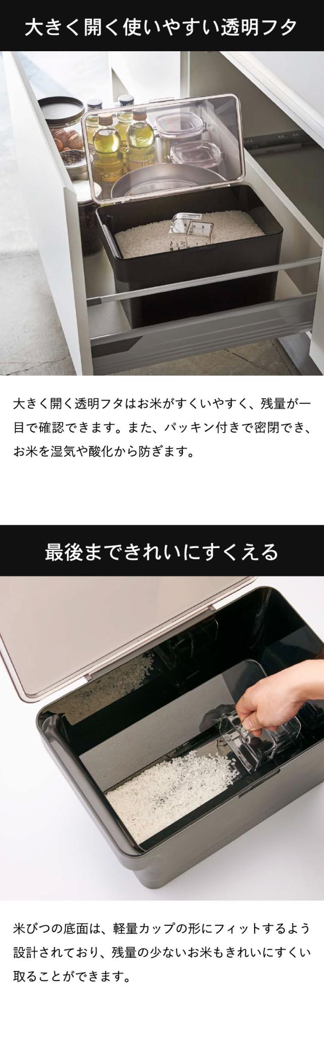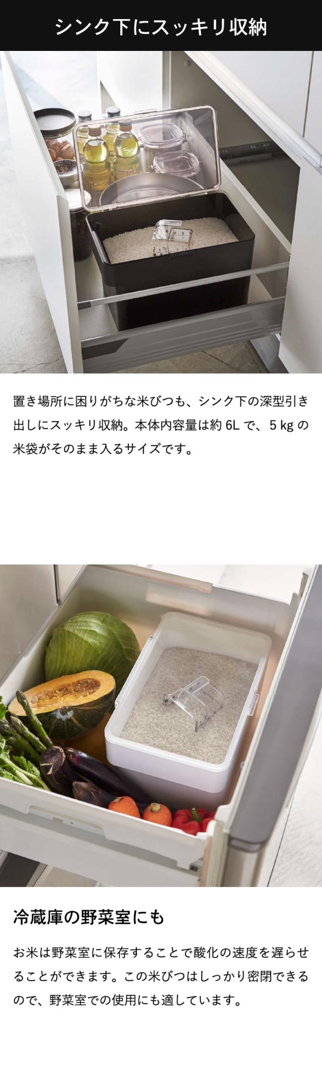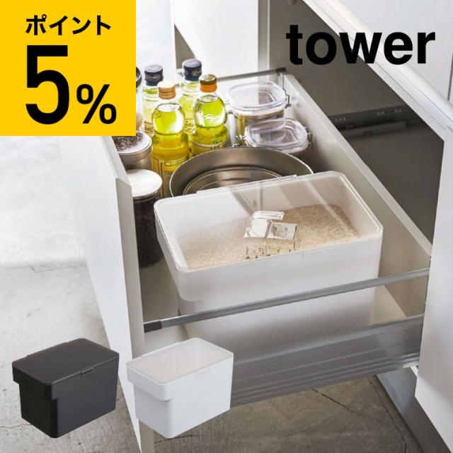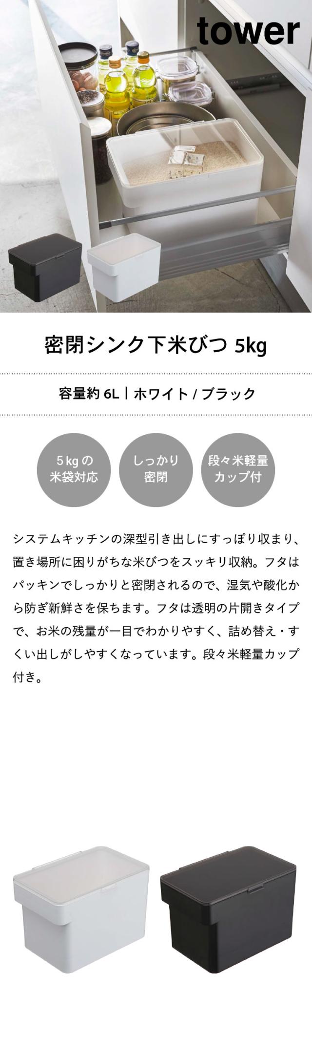 tower 山崎実業 送料無料 密閉 シンク下米びつ タワー 5kg 計量カップ付 WH ブラック 米櫃 こめびつ シンク下 冷蔵庫 スリム ライスストッカー 中身が見える 誕生日プレゼント