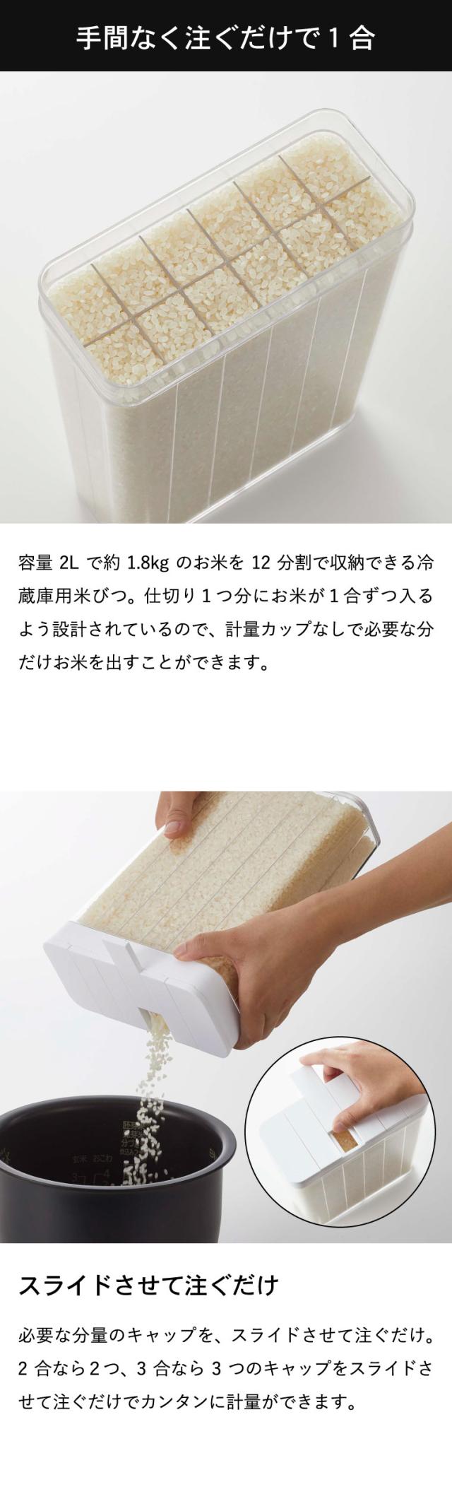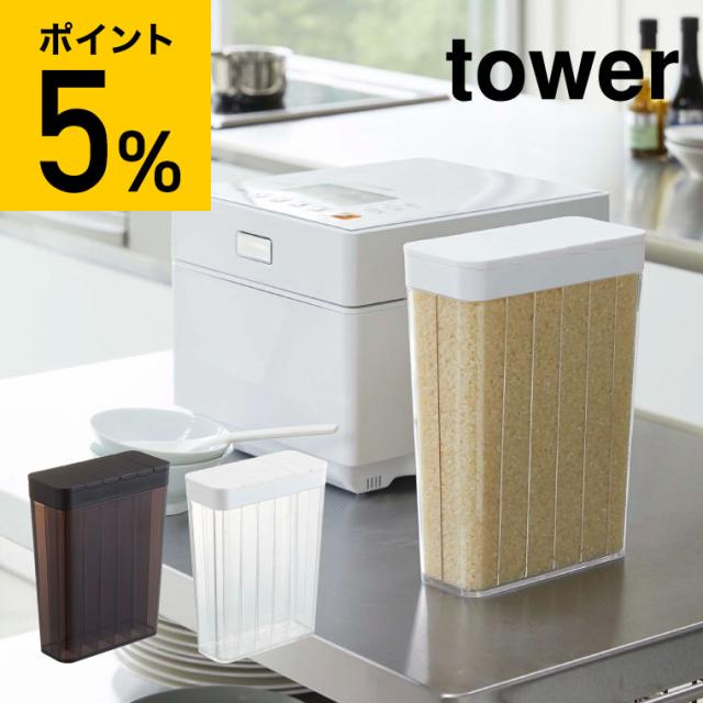 tower 山崎実業 1合分別 冷蔵庫用米びつ タワー ホワイト ブラック キッチン収納 米櫃 こめびつ スリム ライスストッカー 冷蔵庫収納 12合 2L シンプル おしゃれ 誕生日プレゼント