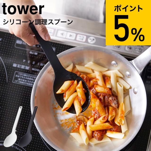 tower 山崎実業 シリコーン調理スプーン タワー ホワイト ブラック お玉 おたま キッチンツール 計量スプーン シリコン ヘラ 直置き シンプル おしゃれ 誕生日プレゼント