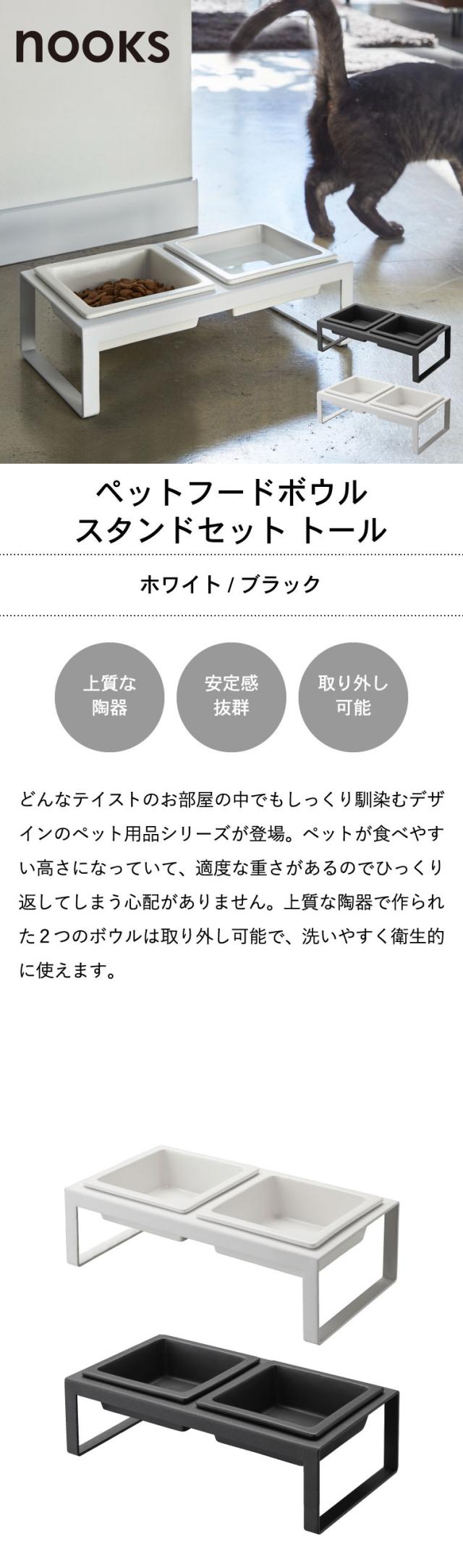 nooks 山崎実業 送料無料 ペットフードボウルスタンドセット ヌークス トール ホワイト ブラック フードボール 猫 犬 ペット 食器 ご飯 エサ台 食器台 お皿 フードスタンド シンプル おしゃれ 誕生日プレゼント