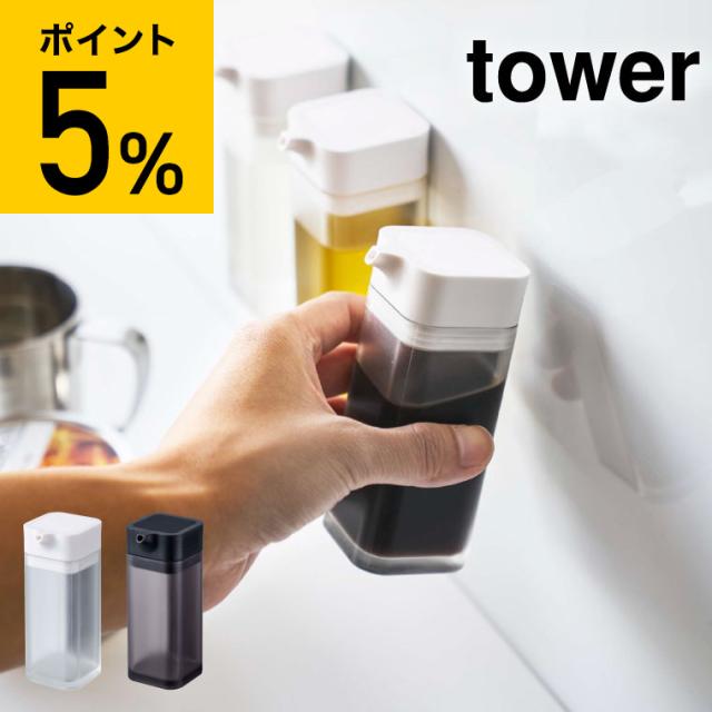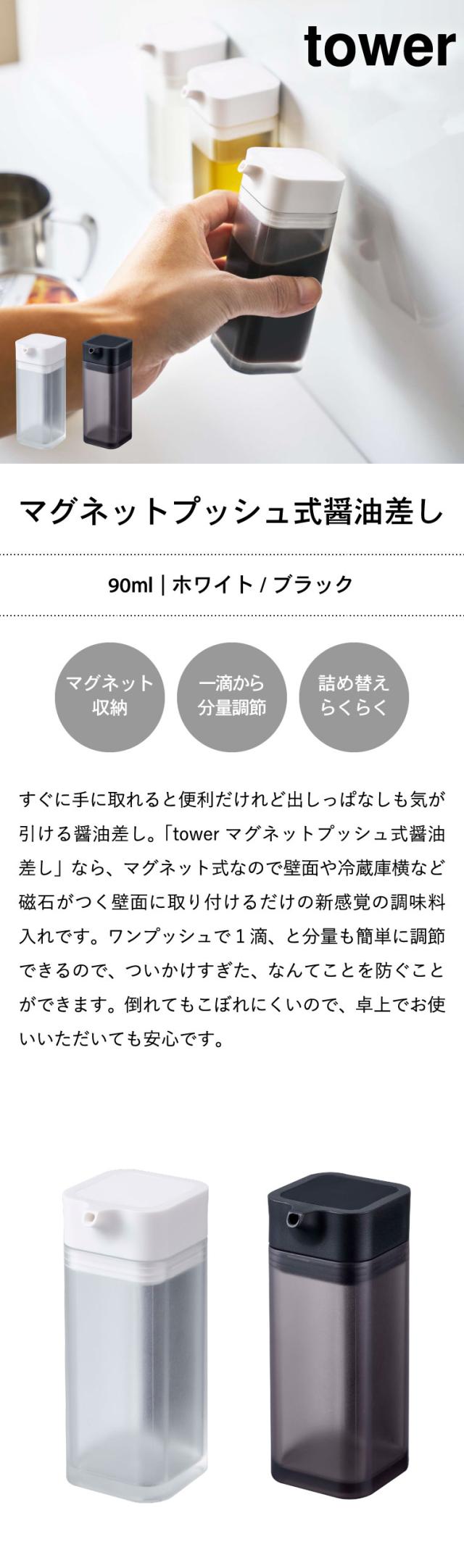 tower 山崎実業 マグネットプッシュ式醤油差し タワー ホワイト ブラック 卓上醤油ボトル 調味料入れ 詰め替え 醤油さし 調味料ボトル 磁石 壁面収納 シンプル おしゃれ 誕生日プレゼント