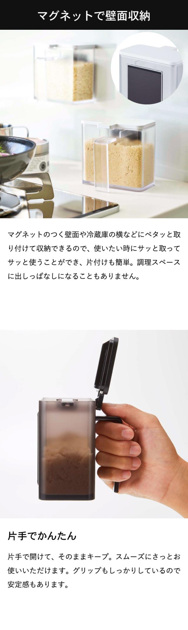 - 二つとも うちでは使用頻度の高い砂糖を入れて 使用しています。 洗えて 中身も見えるし 壁につけられて 非常に便利です。