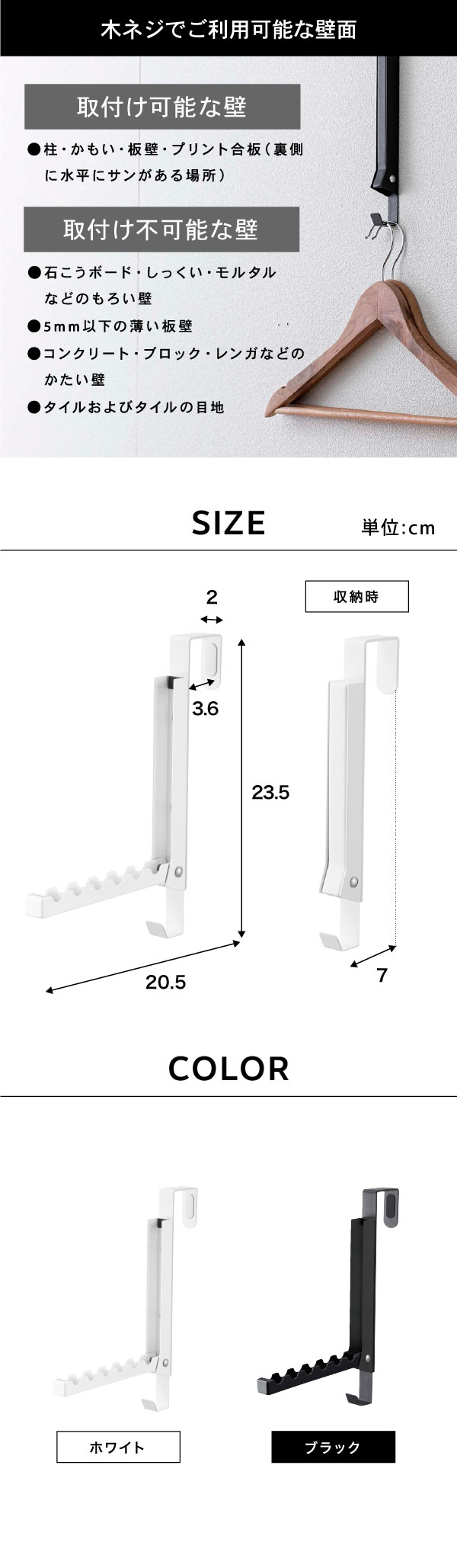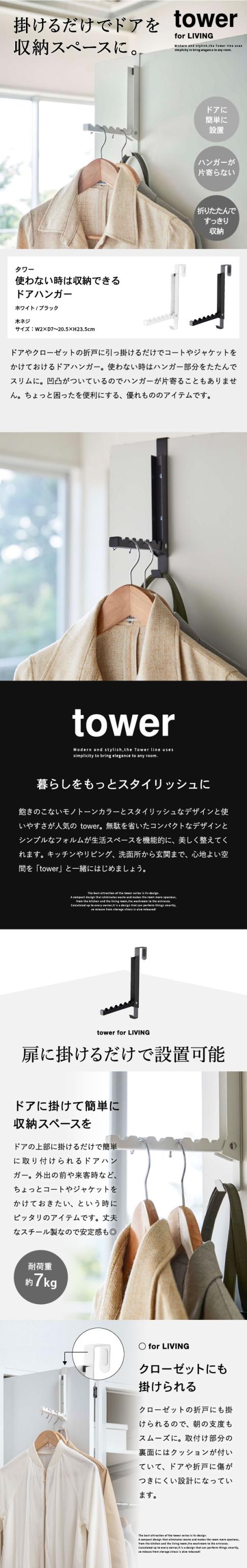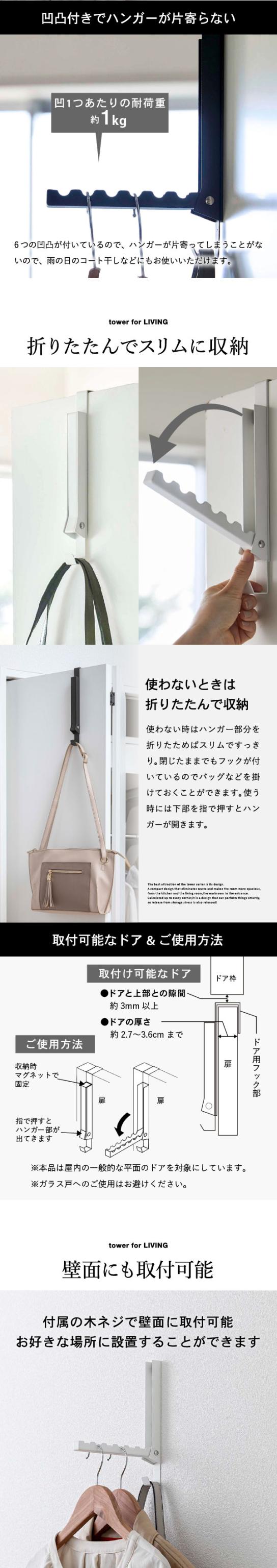 tower 山崎実業 タワー 使わない時は収納できるドアハンガー ホワイト ブラック 5514 5515 折り畳み 折りたたみ ドアハンガー ハンガー 室内干し クローゼット ドア 壁面収納 誕生日プレゼント