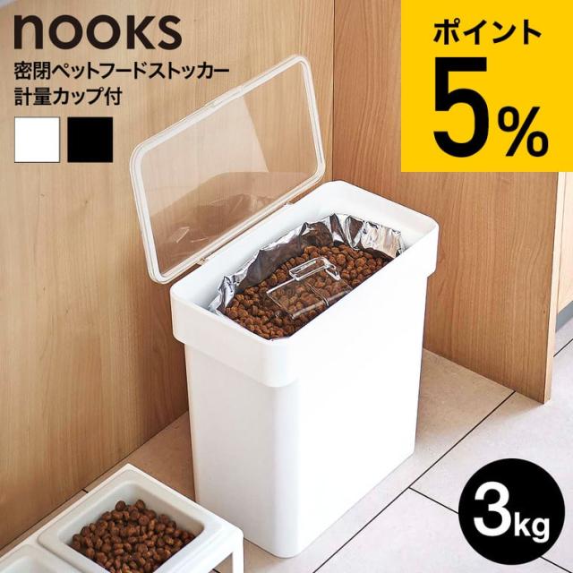 nooks 山崎実業 送料無料 ヌークス 密閉袋ごとペットフードストッカー 3kg 計量カップ付 ホワイト ブラック 5613 5614 フードフード ストッカー ドッグフード 保存容器 ペット用品 猫 犬 ペット エサ入れ 誕生日プレゼント