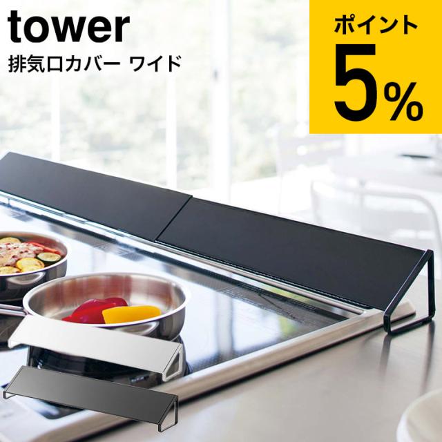tower 山崎実業 送料無料 タワー 排気口カバー ワイド コンロカバー キッチン ホワイト ブラック 3532 3533 コンロ奥 グリル カバー 油汚れ防止 タワーシリーズ 誕生日プレゼント