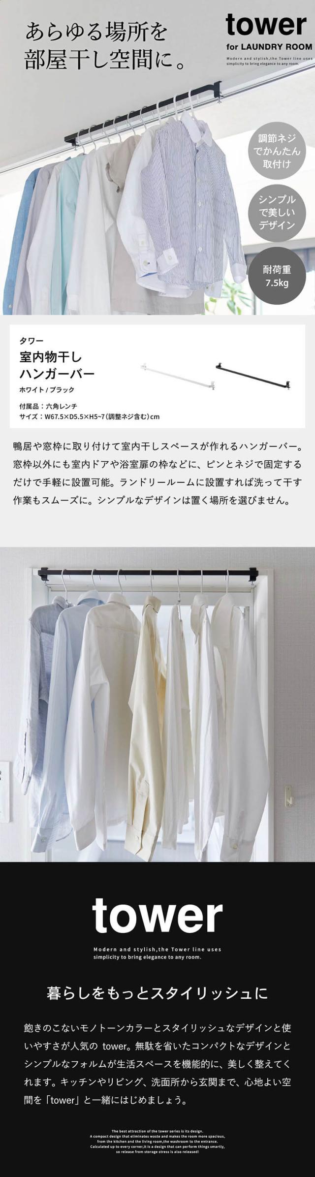 tower 山崎実業 送料無料 タワー 室内物干しハンガーバー ホワイト ブラック 5619 5620 部屋干し 室内干し 窓枠 浴室扉 鴨居 取付 取り付け 洗濯物 誕生日プレゼント