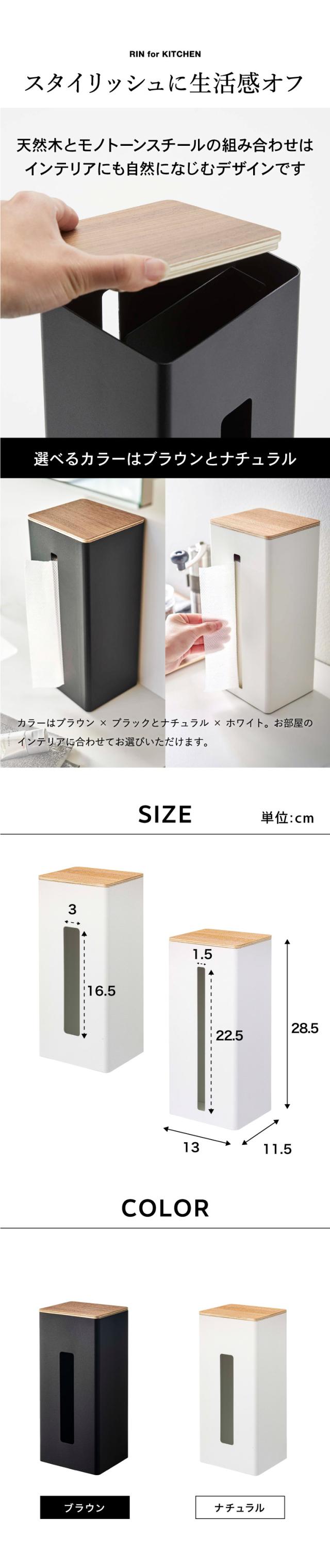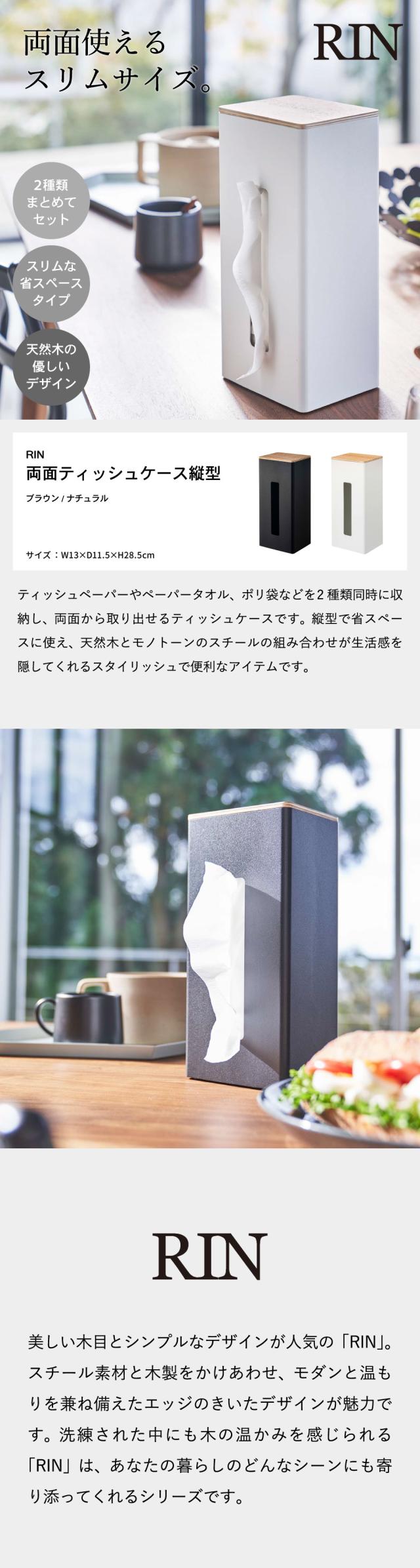 RIN 山崎実業 送料無料 両面ティッシュケース縦型 リン ブラウン ナチュラル 5635 5636 洗面所 ペーパータオル ティッシュ ティッシュボックス ボックスティッシュ 台所 ナイロン袋 収納 誕生日プレゼント