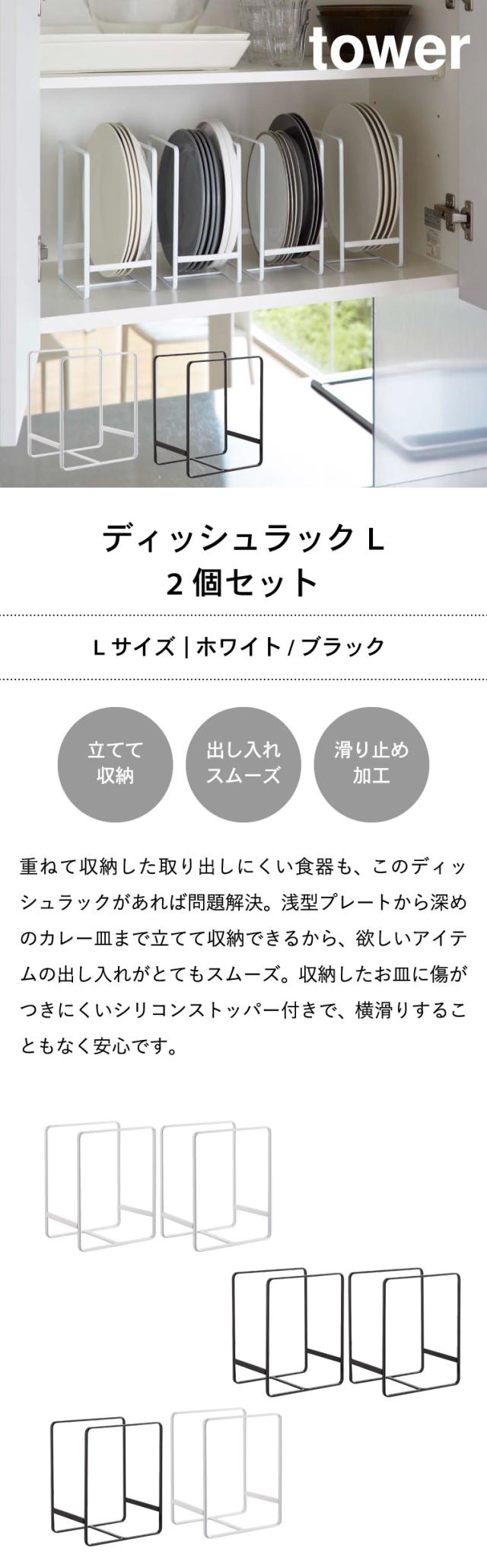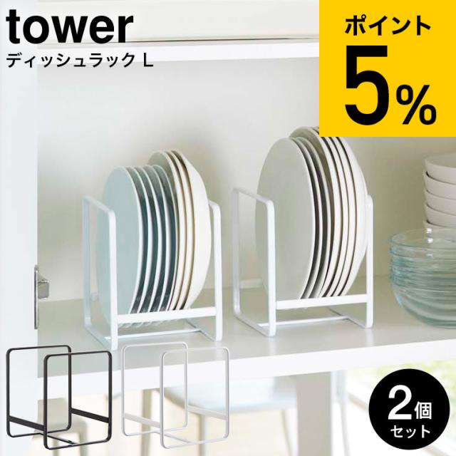 tower 山崎実業 送料無料 ディッシュラック L タワー 2個セット ホワイト ブラック 2268 2269 食器 食器棚 キッチン 収納 お皿立て スタンド シンク下 タワーシリーズ 誕生日プレゼント
