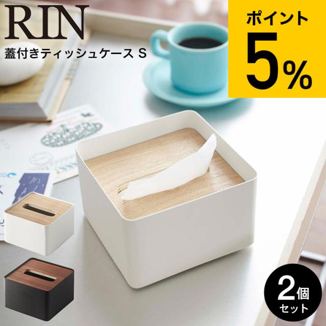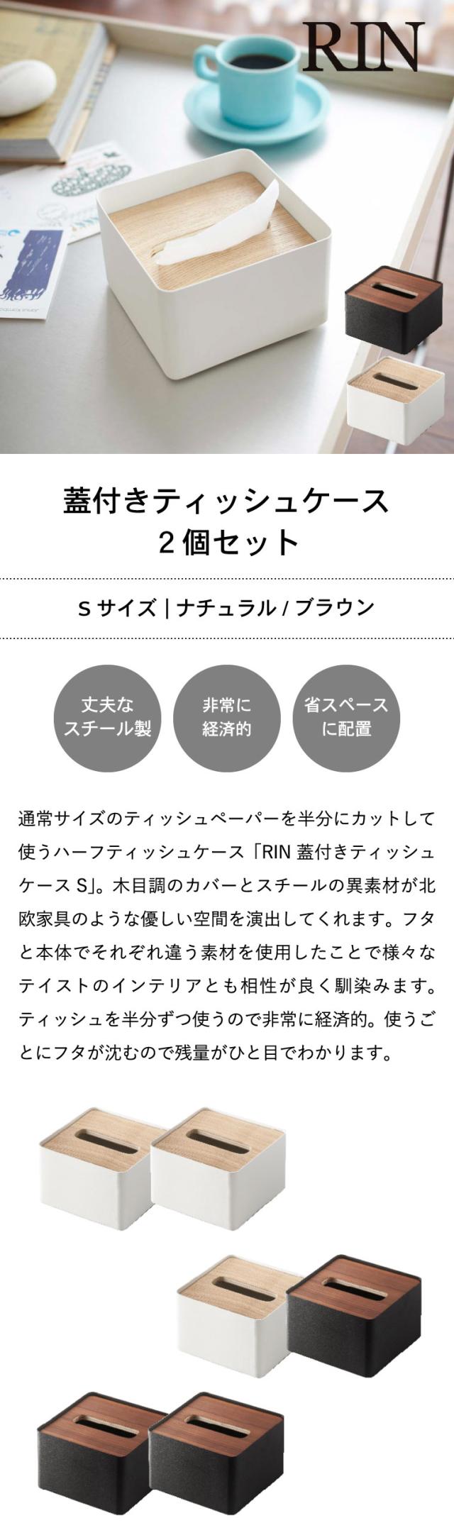 RIN 山崎実業 送料無料 蓋付きティッシュケース S リン 2個セット ブラウン ナチュラル 7731 7732 ハーフサイズティッシュ ナチュラル ティッシュカバー ティッシュ ケース ふた付き フタ付き シンプル 木目 天然木 リビング サニタリー 洗面所