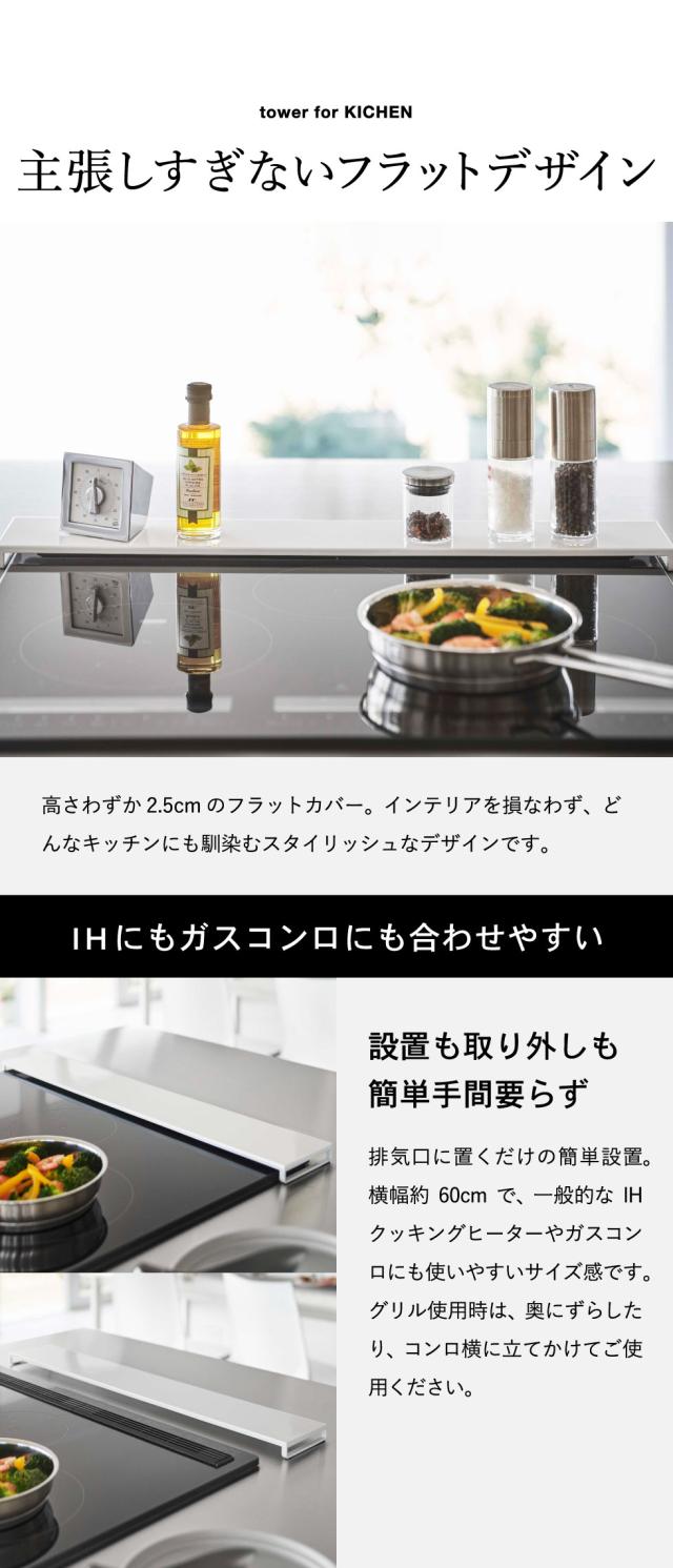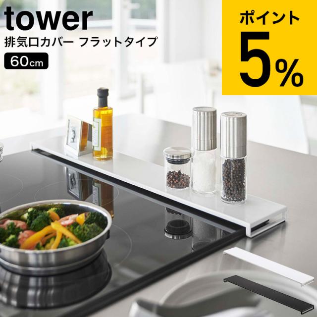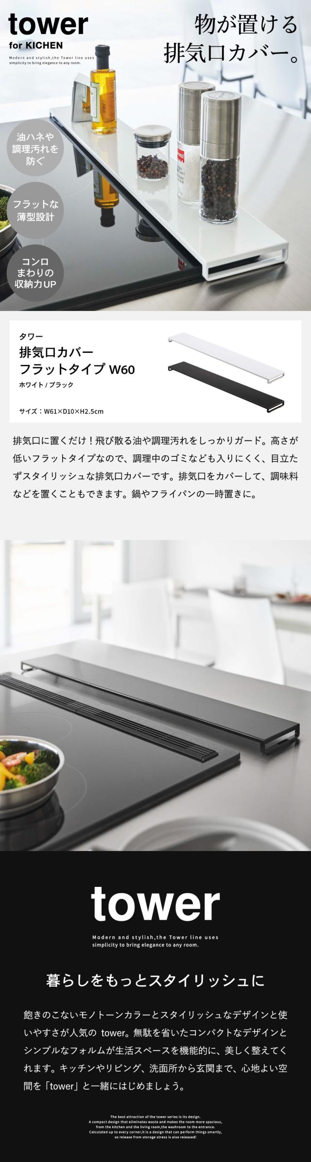 tower 山崎実業 送料無料 排気口カバー タワー フラットタイプ W60 ホワイト ブラック 5734 5735 コンロ 排気口カバー コンロ奥 油はね ガード 油汚れ防止 調味料置き 鍋 鍋置き グリル カバー タワーシリーズ 誕生日プレゼント
