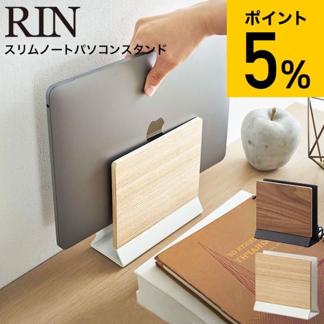 RIN 山崎実業 送料無料 スリムノートパソコンスタンド リン ブラウン ナチュラル 5855 5856 パソコン タブレット 収納 スタンド 天然木 リモートワーク デスク リビング シンプル おしゃれ 誕生日プレゼント