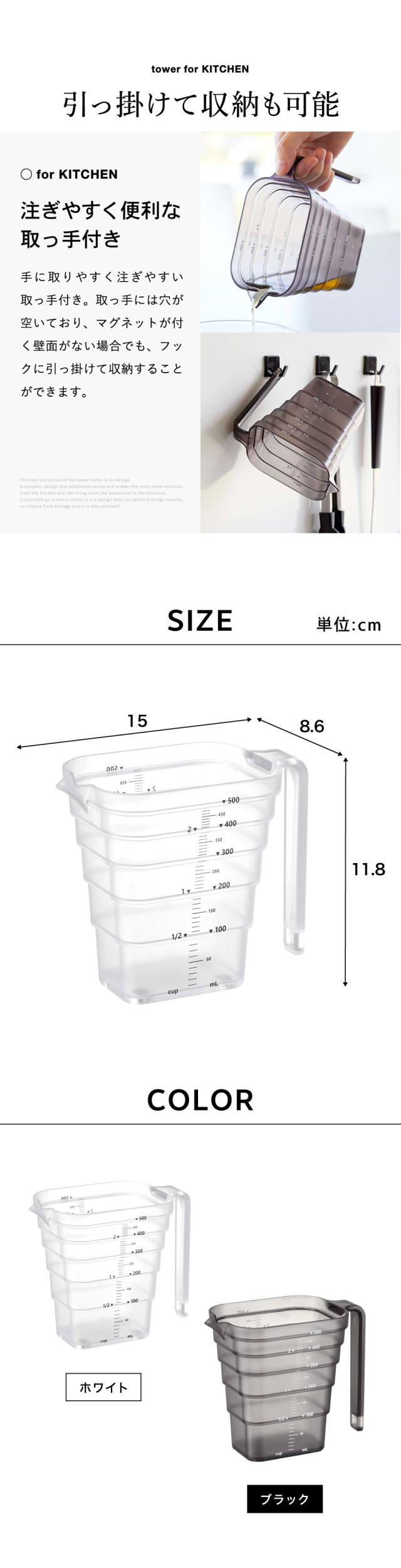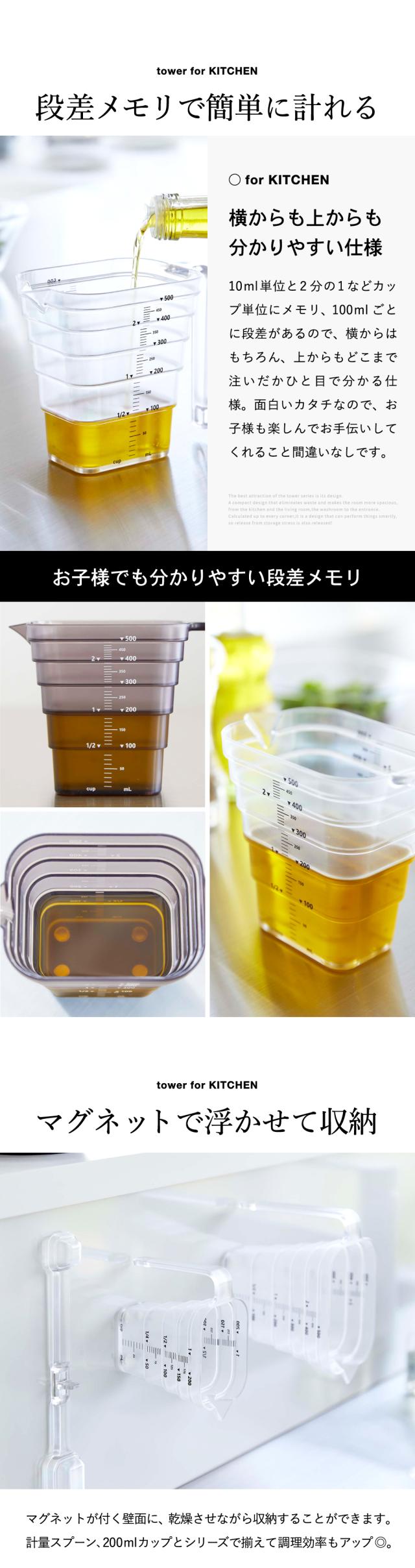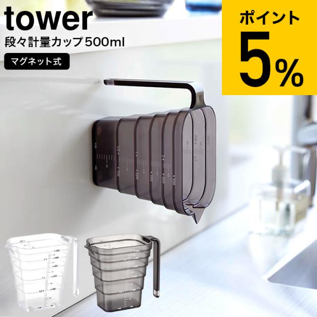 tower 山崎実業 マグネット段々計量カップ タワー 500mL ホワイト ブラック 6921 6922 計量カップ 食洗機対応 食洗器 持ち手付き 耐熱 メモリ キッチン収納 磁石 マグネット 計量器具 調理器具 キッチン用品