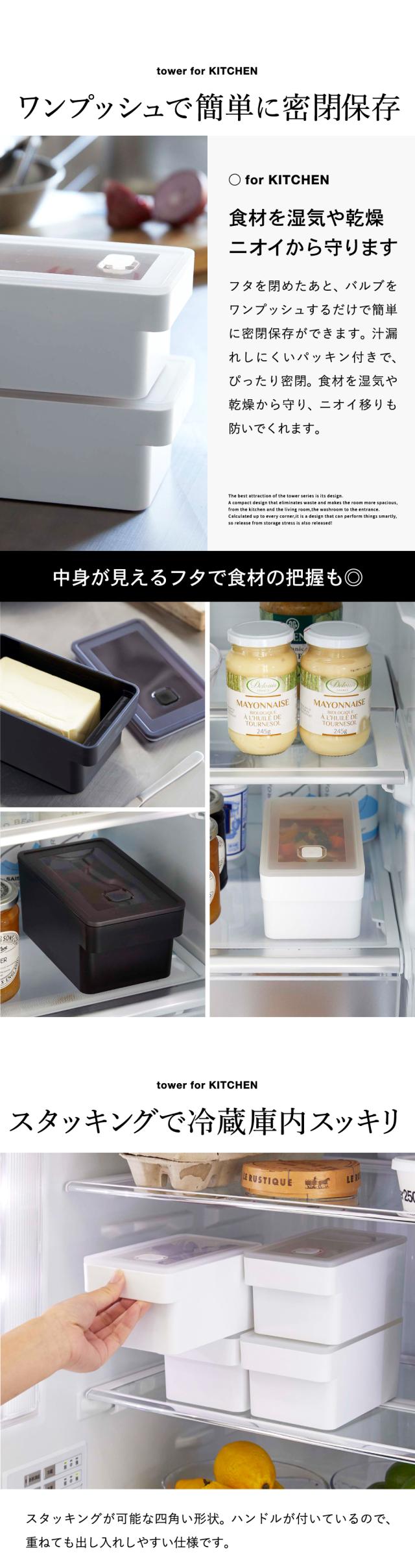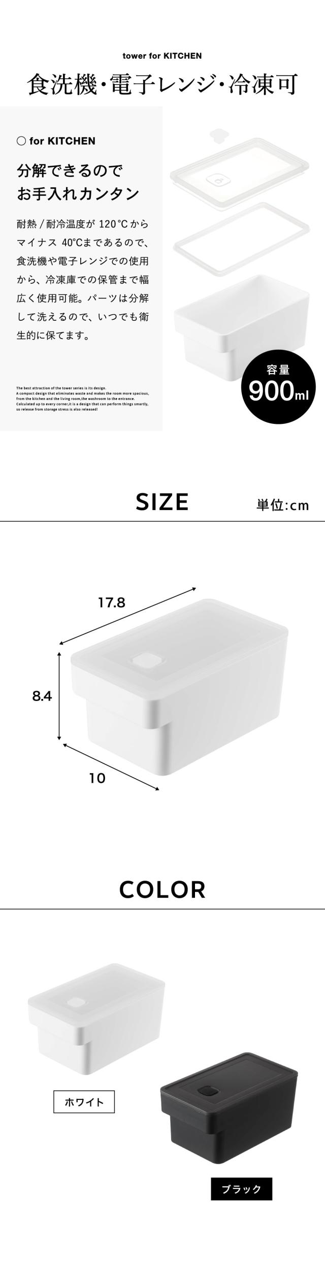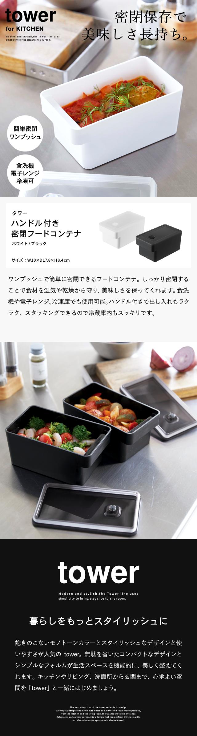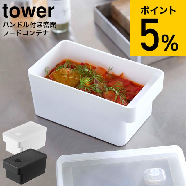 tower 山崎実業 ハンドル付き密閉フードコンテナ タワーホワイト ブラック 7707 7708 保存容器 密閉 プラスティック 食洗機 電子レンジ 冷凍庫 可 作り置き スタッキング 積み重ね 食品保存 タワーシリーズ