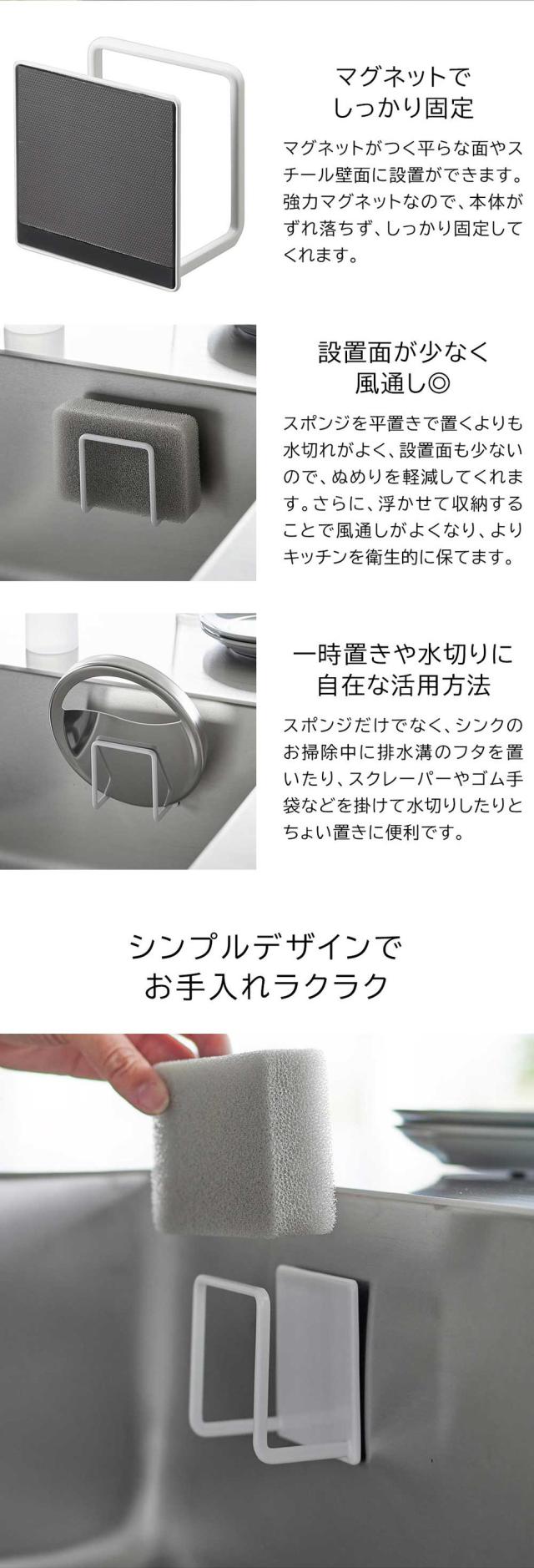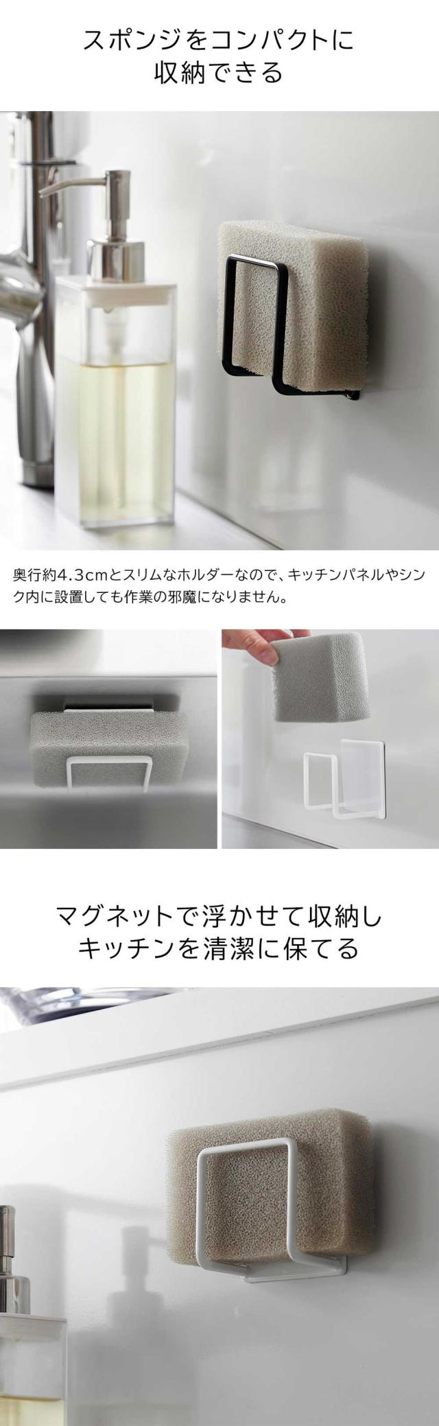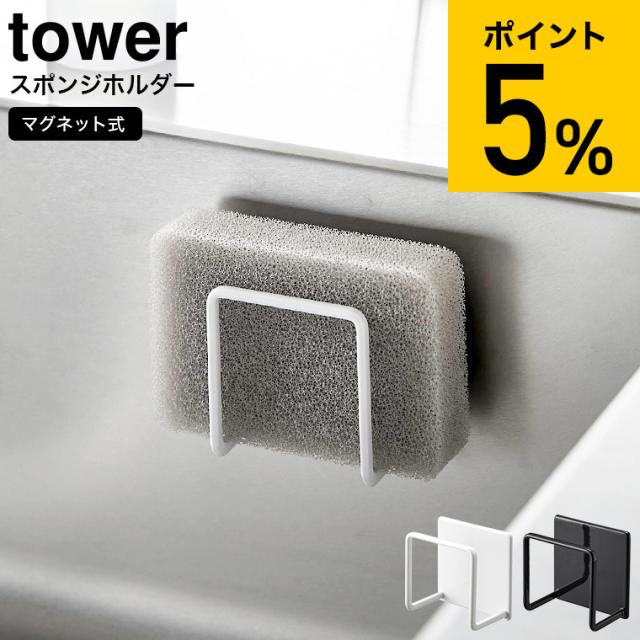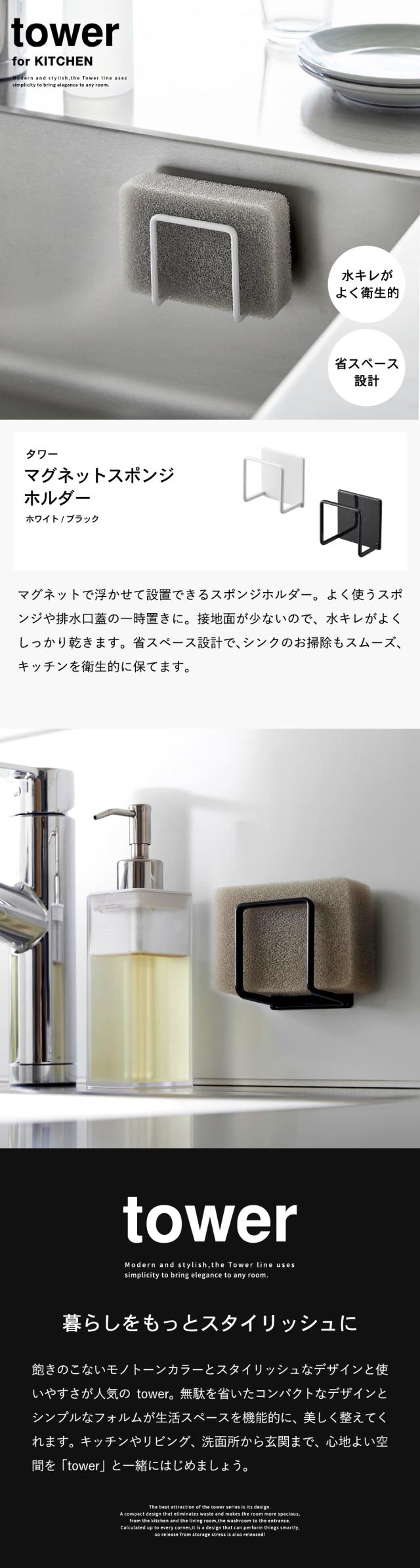 tower 山崎実業 マグネットスポンジホルダー タワー ホワイト ブラック 3070 3071 キッチンスポンジ スポンジ置き スポンジラック スポンジ収納 シンク キッチンパネル 浮かせる収納 シンプル 省スペース 誕生日プレゼント