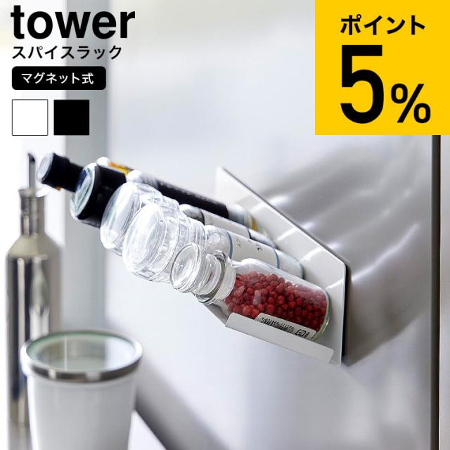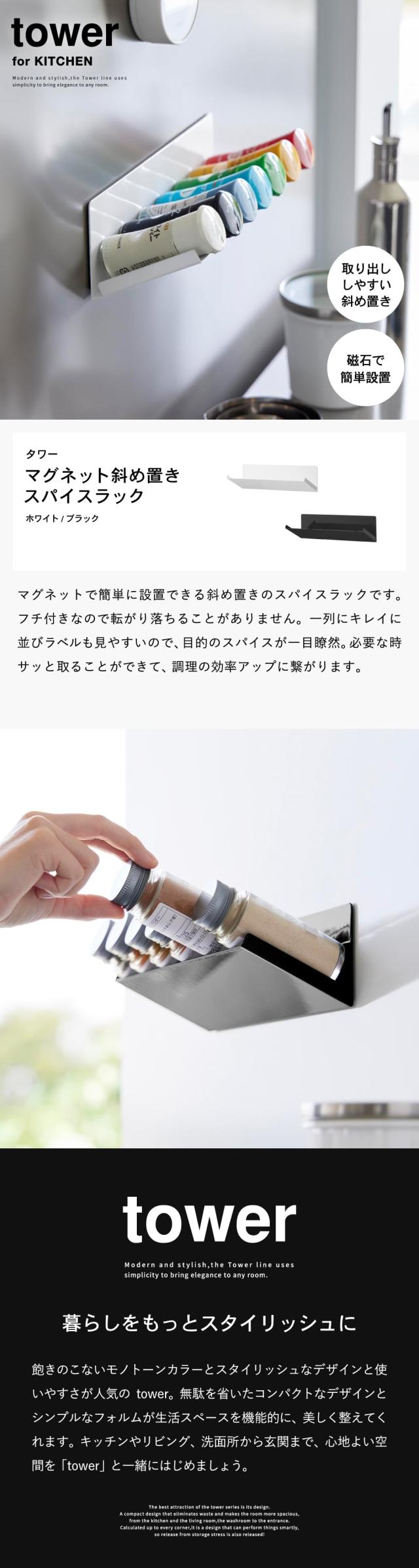 tower 山崎実業 マグネット斜め置きスパイスラック タワー キッチン 1905 1906 ホワイト ブラック 調味料ラック 調味料ケース 調味料置き 調味料入れ 壁面収納 浮かせる収納