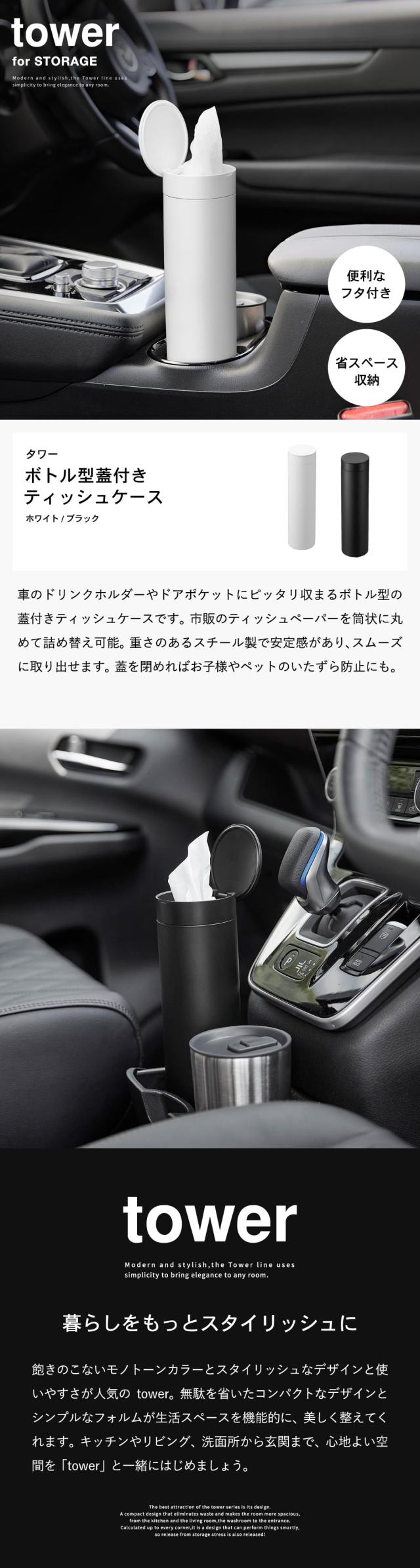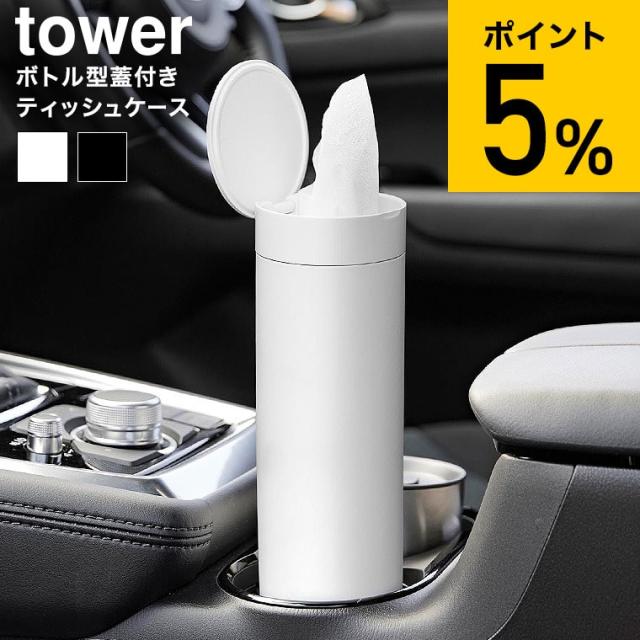 山崎実業 公式 tower ボトル型蓋付きティッシュケース タワー 1828 1829 ホワイト ブラック ティッシュペーパー 車用品 車内 ドリンクホルダー ティッシュボックス タワーシリーズ yamazaki JGS