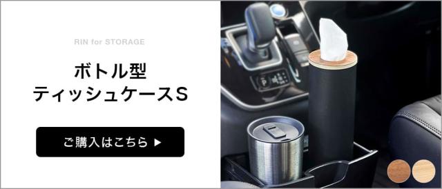 車のドリンクホルダーやドアポケットに収まるコンパクトなボトル型ティッシュケース。市販のティッシュペーパーを筒状に丸めて詰め替えるだけでスリムに収納。ダイニング 洗面所