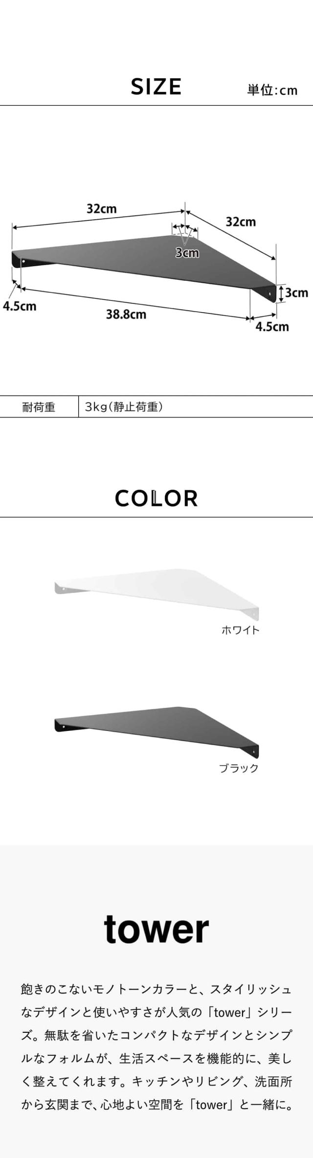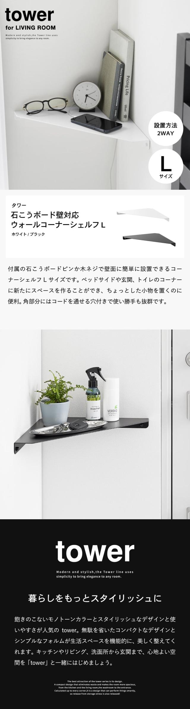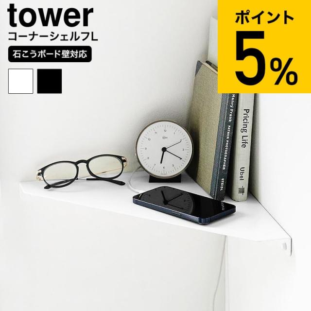 山崎実業 tower ウォールコーナーシェルフ タワー L 石こうボード壁対応 公式 1401 1402 ホワイト ブラック 送料無料 棚 ウォールシェルフ リビング トイレ 寝室 ベッドサイド 玄関 スマホ スマートフォン 充電