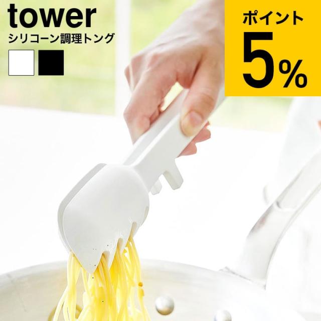 山崎実業 公式 tower シリコーン調理トング タワー 1775 1776 ホワイト ブラック シリコン トング パスタ サラダトング スプーントング 耐熱 直置き 食洗機対応 取り分け タワーシリーズ JGS