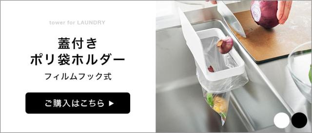 マグネットで簡単に設置できる蓋付きポリ袋ホルダー。臭い漏れの軽減や虫の侵入も防止。キッチンパネルやシンク内に設置したりと、自由度の高いゴミ箱。yamazaki タワーシリーズ