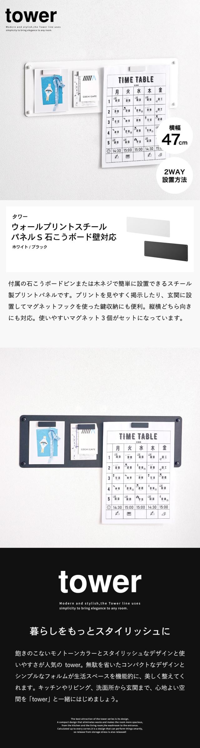 山崎実業 tower ウォールプリントスチールパネル タワー S 石こうボード壁対応 公式 10153 10154 ホワイト ブラック / マグネットボード 掲示板 掲示ボード メモボード プリント収納 鍵 小物 写真 JGS