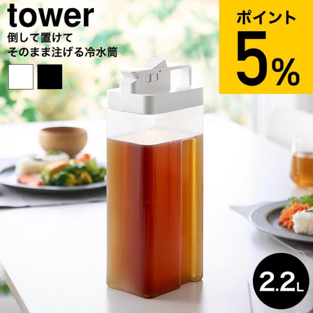 山崎実業 tower 倒して置けてそのまま注げる冷水筒 タワー 2.2L 公式 10029 10030 ホワイト ブラック 送料無料 / 冷蔵庫内 収納 冷水筒 冷水ポット 麦茶ポット 冷茶ポット お茶 ピッチャー 食洗機対応 yamazaki JGS