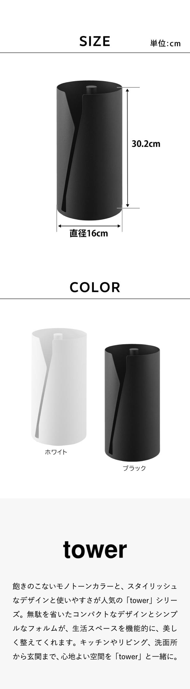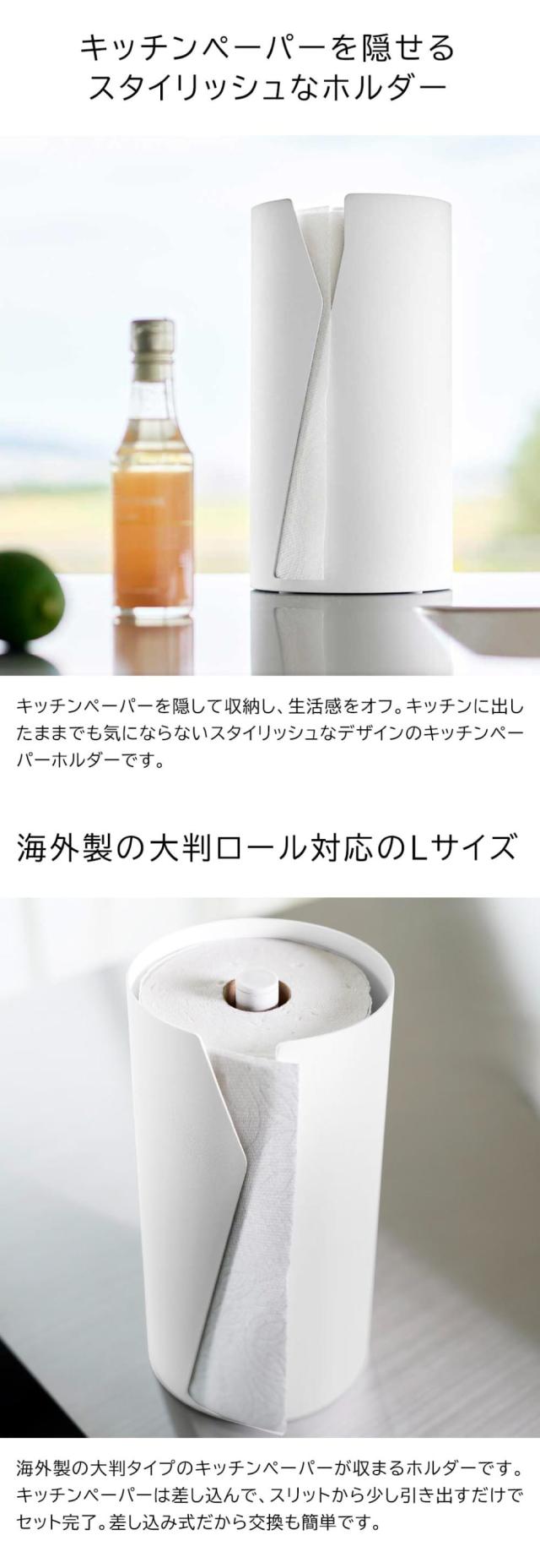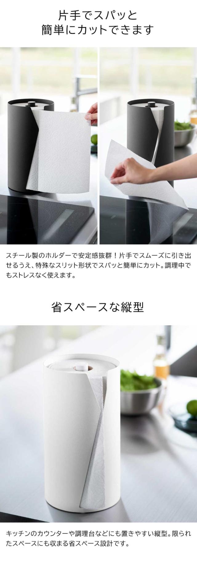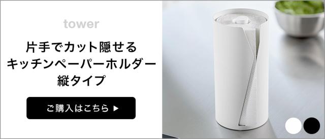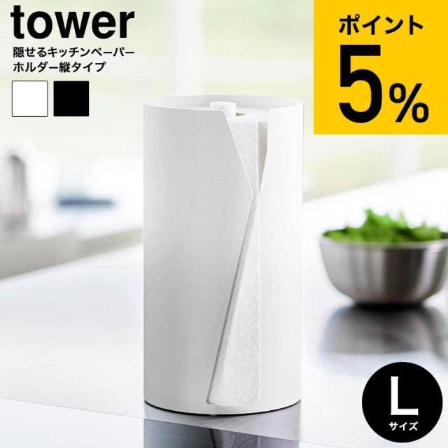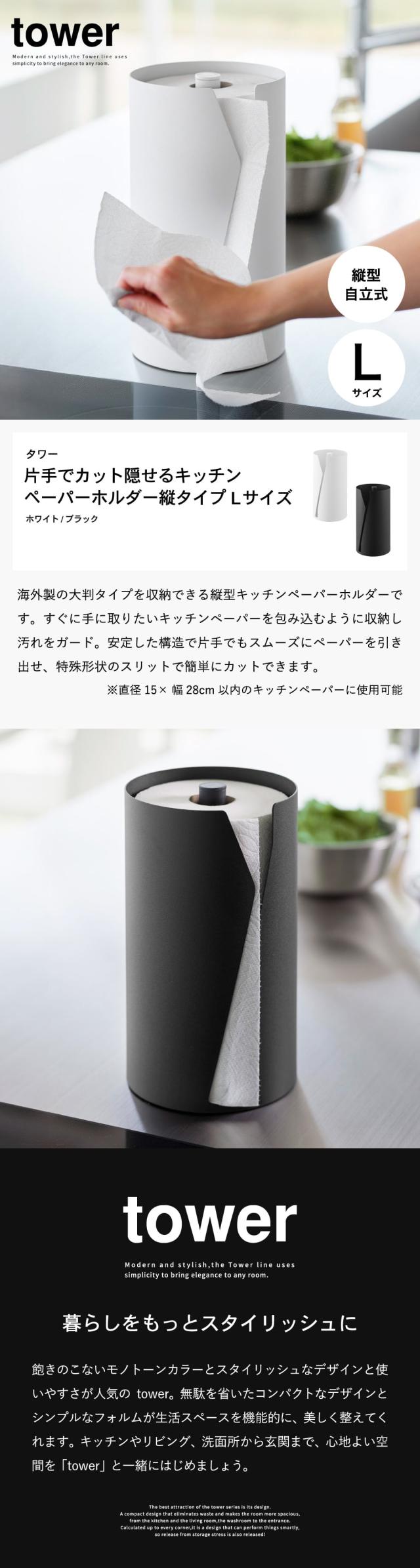 山崎実業 tower 片手でカット隠せるキッチンペーパーホルダー タワー 縦タイプ L 公式 10041 10042 ホワイト ブラック 送料無料 / 片手で切れる キッチンロール キッチンタオル 大きめ キッチン用品 JGS