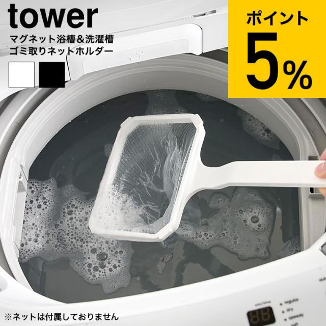 山崎実業 tower マグネット浴槽&洗濯槽ゴミ取りネットホルダー タワー 公式 10117 10118 ホワイト ブラック / ごみ取りネットお風呂 髪の毛 アカ すくい 洗濯機 掃除 クリーナー カビ取り カス取り 洗面 収納 JGS