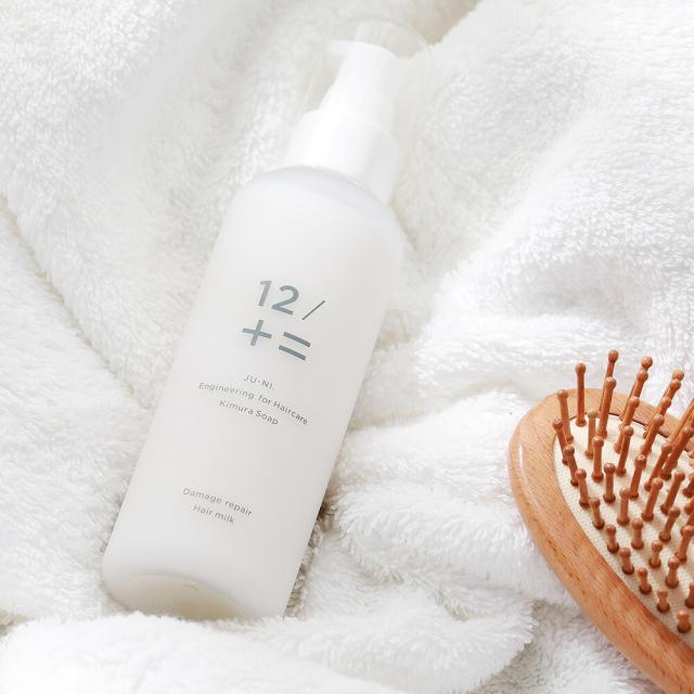 JU-NIが考える、髪のための乳液。 1924年創業、伝統の窯焚き製法で職人が手作業で石鹸の製造を行なう「木村石鹸」が、5年の歳月をかけて生み出した「12/JU-NI」。 |こんな方におすすめ ✔ ダメージが酷く、洗髪後にヘアオイルなどをつけて乾かしている方✔ カラー、パーマ、縮毛矯正、白髪染め等で毛先のパサつきが気になる方 ✔ しっかりダメージケアのできるアウトバストリートメントを探している方 ✔ ヘアアイロンやコテを使ったヘアアレンジをする方 | 成分特徴