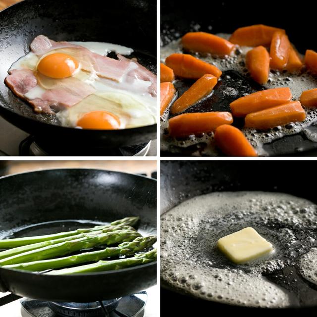 最初に使う前の「油ならし」 「油ならし」 毎回使う前の「油返し」 「油返し」 ご使用後は 洗う前にペーパータオルなどで、できるだけ油や汚れを拭き取っておきましょう。 お手入れ ●万が一焦げ付かせてしまったら