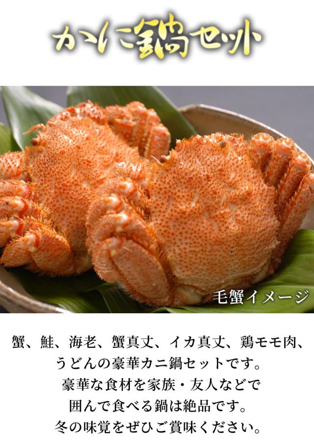 \ポイント消化!/ かに鍋セット 毛蟹 (4 人前) 毛ガニ 蟹、鮭、海老、蟹真丈、イカ真丈、鶏モモ肉、うどん 蟹 タラバ 毛蟹 ギフト 内祝い 紅白 贈り物 国内 プレゼント お歳暮