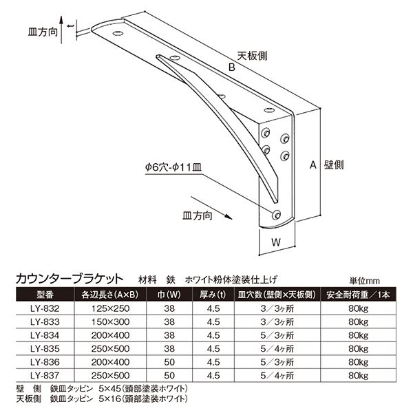 商品仕様: カウンターブラケット ホワイト 白 LY-835 [2本入]【0306-03744】