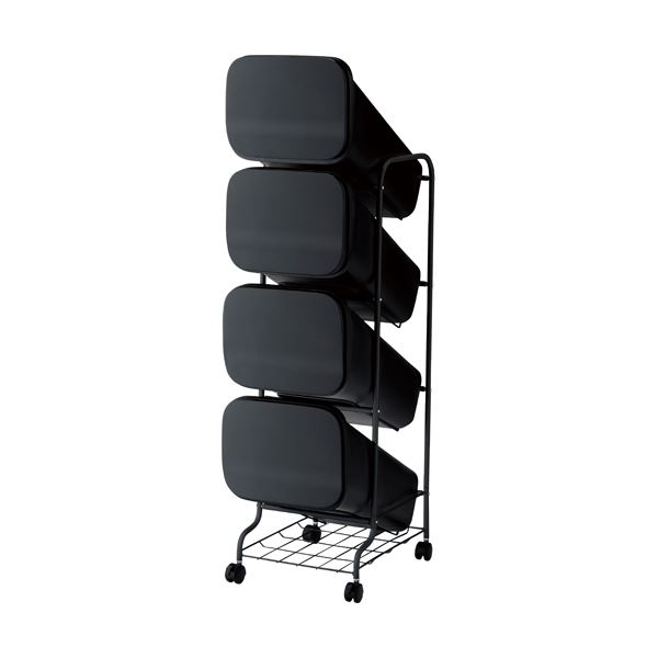 スタンド式 ダストボックス/ゴミ箱 【ブラック 19L×4段】 高さ122cm キャスター付 移動可能 車輪付き き 『スムース』 黒 送料無料