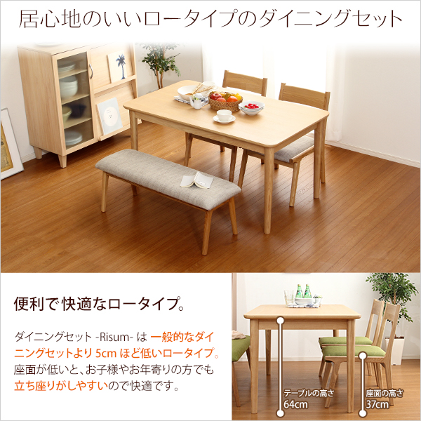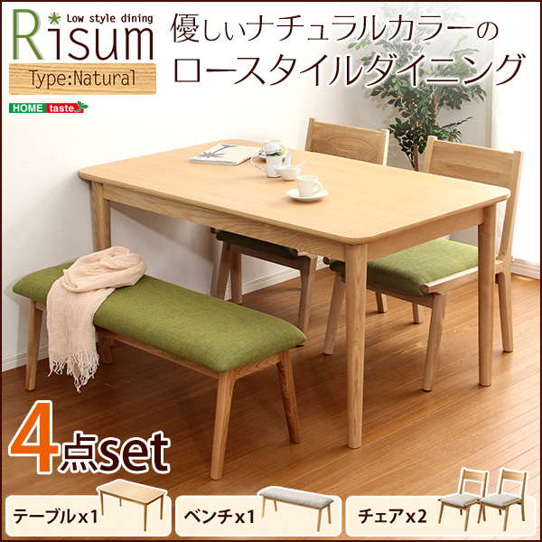 ダイニング4点セット(テーブル+チェア2脚+ベンチ)ナチュラルロータイプ 木製アッシュ材|Risum-リスム-