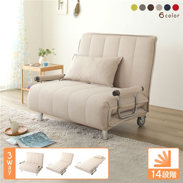 商品仕様: ソファーベッド 約幅101cm ベージュ 折りたたみ式 リクライニング キャスター 肘付き 3way カウチソファー リビング
