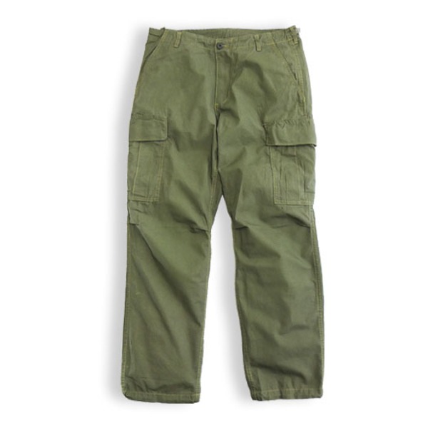 「1962年に採用されたジャングルファティーグの歴史は長く、大きく分けて4度の改良を経ています。当時、開発に当たりM42パラトルーパージャケット、パンツが参考にされており、ジャケットは4個、パンツは6個のポケットを持つスタイルでした。特徴のある斜めに配置された胸ポケットは、戦闘で体を伏せた場合に物を取り出しやすいように工夫されました。また、ポプリン生地は従来のコットン生地より軽量で速乾性に優れていました。ジャングルファティーグは、当初採用されていた露出されたボタンやエポレットは廃止され、ポプリン生地は鉤裂き防止加工が施されたリップストップ生地に変更されました。実戦のなかで改良が加えられ、完成度の高くなったジャングルファティーグは後のBDUに大きな影響を与え、4ポケットジャケット、6ポケットパンツのスタイルは、1990年代末まで戦闘服の基本形となりました。
