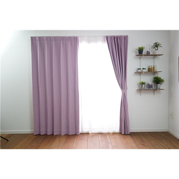 商品仕様: 遮光カーテン/無地カーテン 【幅100cm×丈135cm パープル 1枚入り】 遮光1級 タッセル付き 防炎 形状記憶加工 『プライム2』