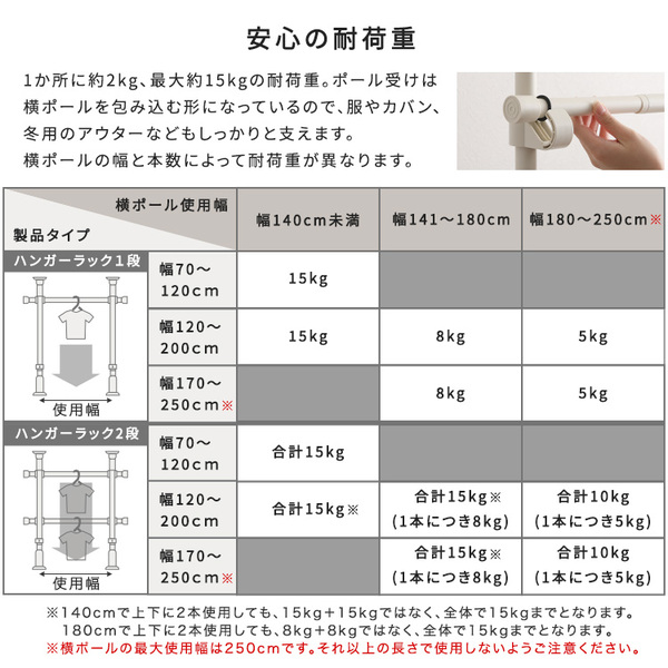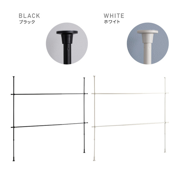商品仕様: つっぱりハンガーラック 2段 約幅250cm ブラック 黒