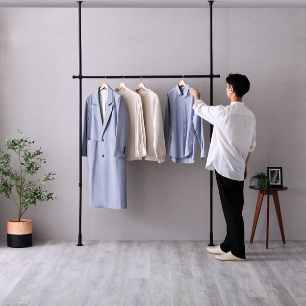 床と天井があれば、お部屋のどこでも使う事が出来る、おしゃれなつっぱりハンガーラック!