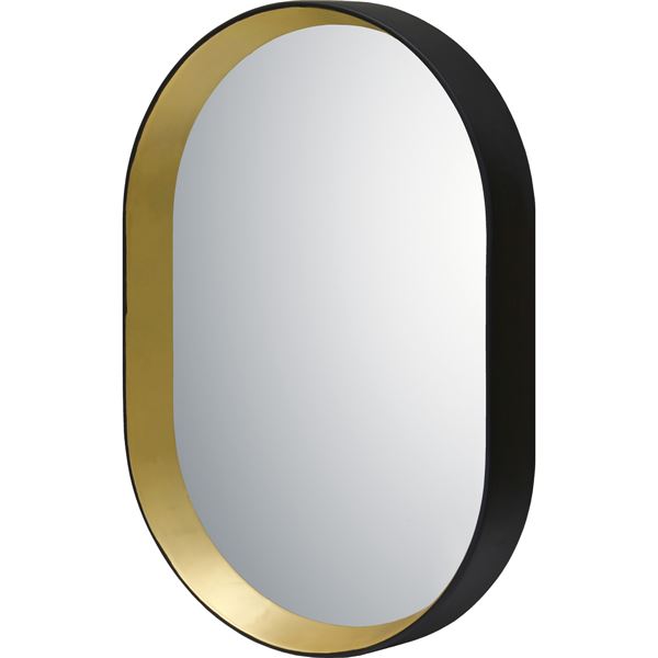 [オーバル]ミラーは、75ミリの奥行きがあるマットブラックのフレーム。内側は60ミリの深さがあるマットなゴールドを配したゴージャスなデザイン。