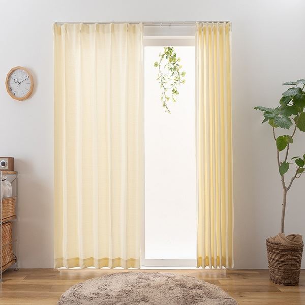 どんなお部屋でも合わせやすい無地のカーテンで、ざっくりとした風合いなので、どんなテイストにもぴったりです。